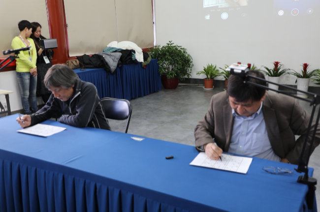 科学出版社总经理彭斌与“数独之父”鍜治真起互动。