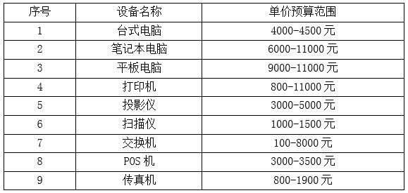 2. 常规办公电子设备范围(包括但不限于以下设备)