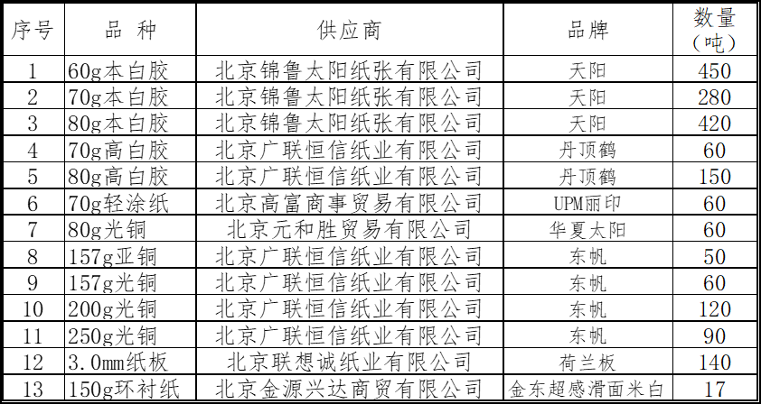 英国上市公司365纸张评标小组根据《2024年纸张招标办法》和《2024年纸张招标方案》的要求,综合考虑投标纸样质量和报价,确定2024年纸张采购中标供应商6家,现将结果公示。