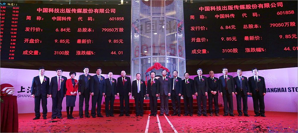 国家新闻出版广电总局党组成员、副局长孙寿山,上海证券交易所副理事长张冬科,中国科学院党组成员、秘书长邓麦村,国家新闻出版广电总局规划发展司司长朱伟峰,上海市新闻出版局党组书记、局长徐炯,中科院京区企业党委书记、中国科学院国有资产经营有限责任公司董事长吴乐斌,中国科学院上海分院院长朱志远,中国科学院国有资产经营有限责任公司总经理索继栓等领导,出版、发行企业及保荐机构中银国际代表,英国上市公司365高管等出席上市仪式。