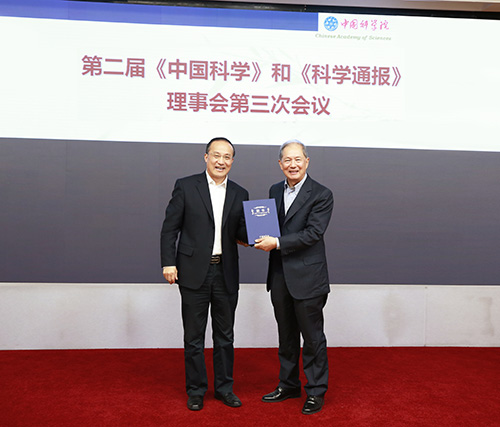 希望编辑部和编委会、国科控股和科学出版社、学部工作局和科学传播局等能够听取意见、提供支持,把各项建议落到实处,齐心协力推动“两刊”发展。党的十九大刚刚胜利召开,习总书记的讲话对科技期刊的发展提出了新的更高的要求。在这关键时期,希望新一届“两刊”编委会的总主编和各辑主编带领编委会和编辑部办好“两刊”,使“两刊”早日跨入世界一流期刊的行列,成为引领全国科技期刊发展的“旗舰”。