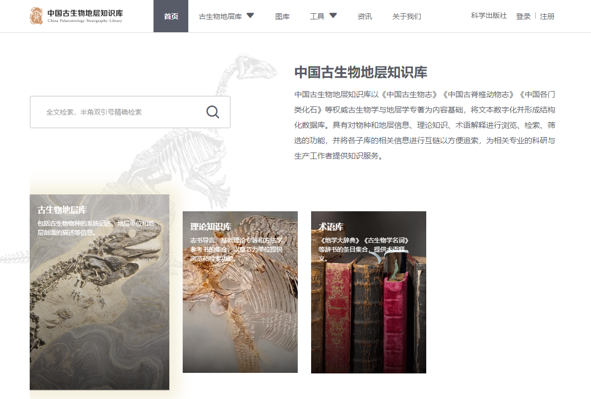中国古生物地层知识库(China Palaeontology Stratigraphy Library, CPSL)是首个全面收录我国古生物系统分类成果并集成物种描述信息、地层、剖面相关信息与理论知识的专业数据库,致力于成为中国最完整、翔实的古生物学与地层学资料库。数据库以权威学术发布平台科学出版社的相关出版物为基础,收录近一百年来出版的古生物志和相关著作中提取的数万种古生物条目数据,将内容知识碎片化、结构化、标准化处理,进行深度标引和组织,含有全面的物种描述、图片、地层、剖面等信息,并与权威科研机构古生物地层数据进行融合与关联,每年持续更新。