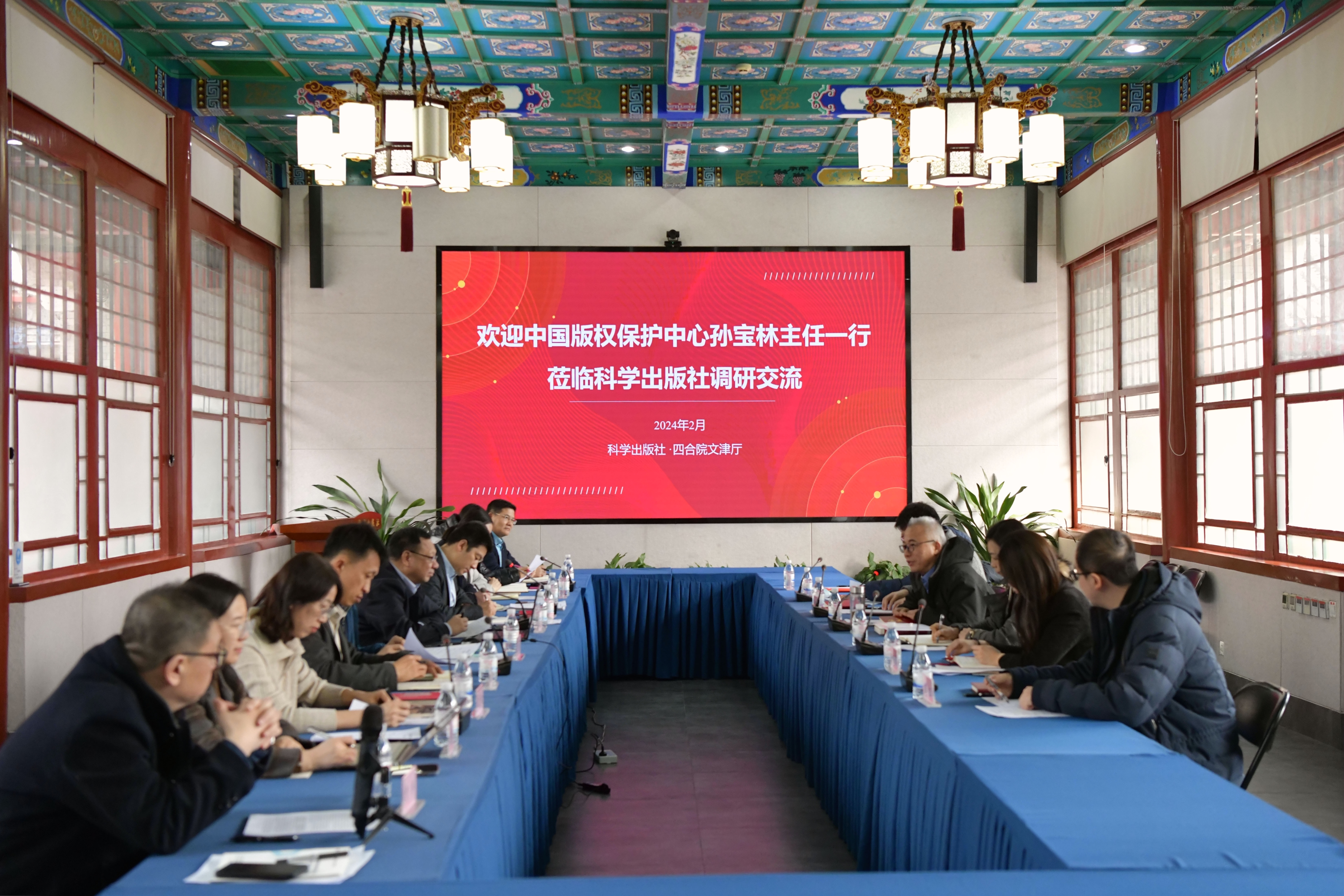 2024年2月26日,全国政协委员、中国版权保护中心党委书记孙宝林一行7人莅临英国上市公司365(科学出版社),就促进我国科研成果论文国内首发及版权问题进行调研。科学出版社党委书记、董事长、总经理胡华强,党委副书记徐雁龙,以及公司相关部门负责人参加调研座谈。中国科学院机关及文献情报中心相关领导、同事专程到会参与交流。