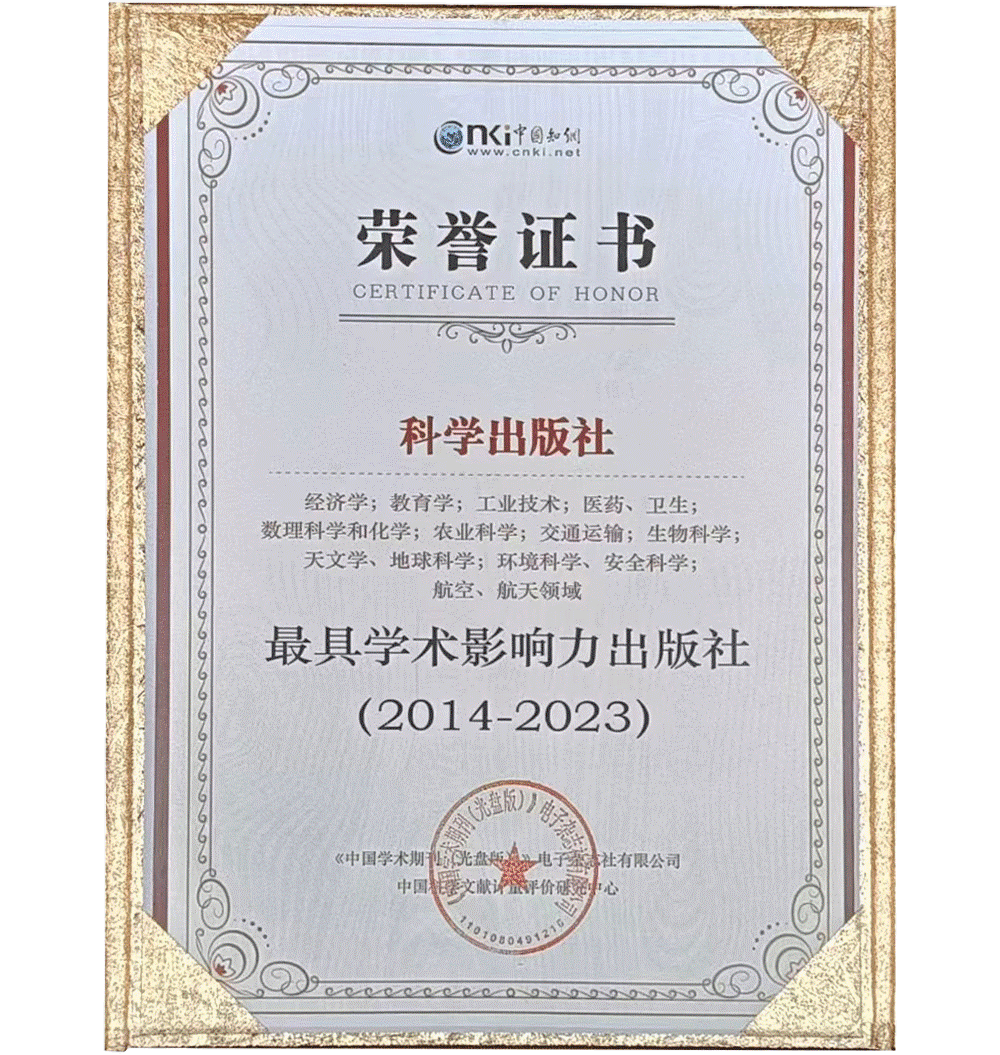 科学出版社入选经济学;教育学;工业技术;医药、卫生;数理科学和化学;农业科学;交通运输;生物科学;天文学、地球科学;环境科学、安全科学;航空、航天11个领域“最具学术影响力出版社(2014-2023)”榜单。“