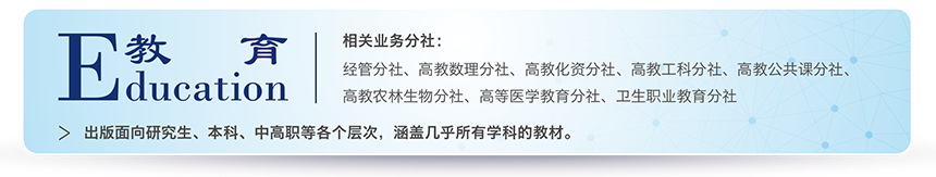 科学出版社不仅重视专业学术出版,而且深知教育对于国家竞争力和科技人才成长的重大意义,特别是高等教育和中高职教育影响尤为深远。因此,近年来不断扩大和提高教育领域出版业务的规模和质量。出版范围包括理学、工学、农学、医学、经管法律、人文等各个学科,涵盖从研究生、本科、高职高专到中职教育的各个层次。目前社内专门从事高等教育和职业教育出版业务的分社/部门已经有十个,年出版规模上千种,常年可供教材品种近5000个,使用科学版教材教辅的大专院校遍布全国所有省区市。